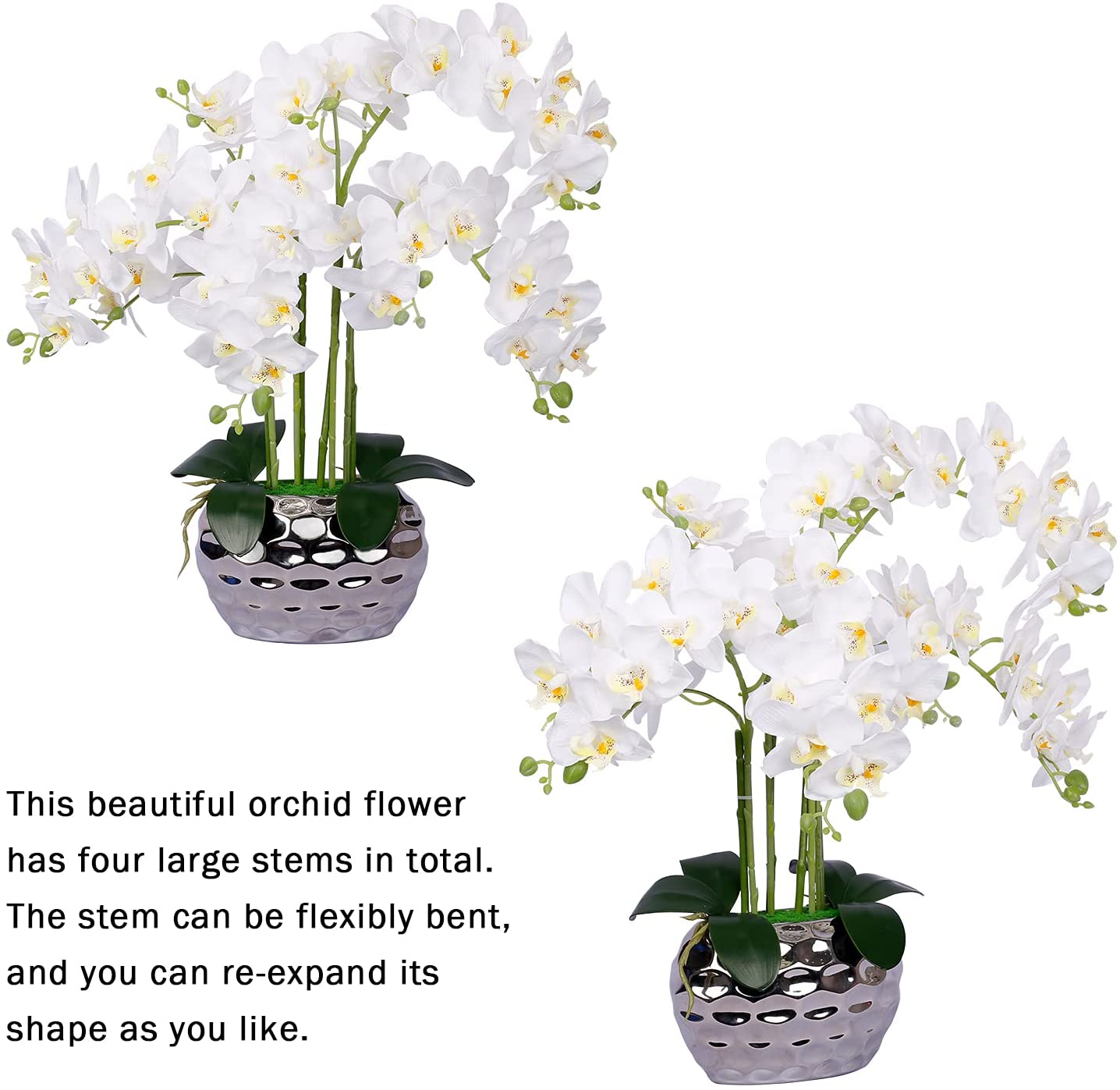 Artificial Orchid with Silver Vase Artificial Flowers Silk Orchids Faux Plant Phalaenopsis for Home
